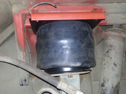 Außerdem haben wir auf der Fahrerseite der Vorderachse bereits ein neues Luftkissen verbaut. Hier zeigte sich, dass unser Schweißer gute Arbeit geleistet hat, denn das Lufitkissen passte auf Anhieb.