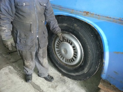 Jetzt steht unser Bus auf all seinen neuen Rädern.