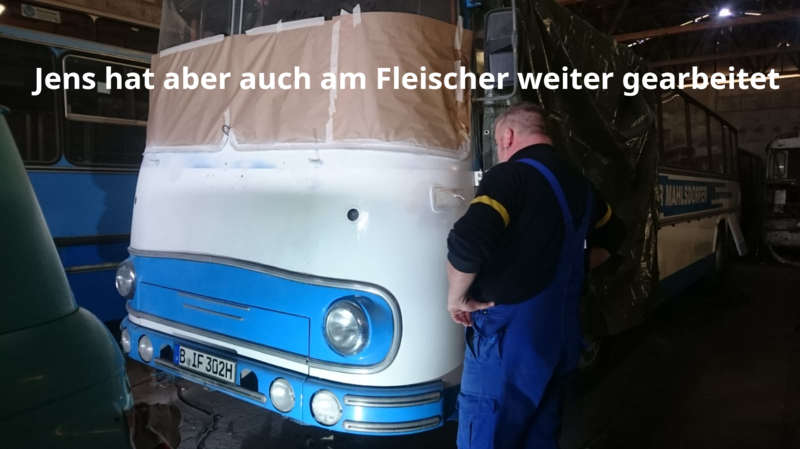Die Spachtel-und Schleifarbeiten am Fleischer stehen nun fast vor dem Ende und es kann sobald es wärmer wird mit dem Lackieren begonnen werden.